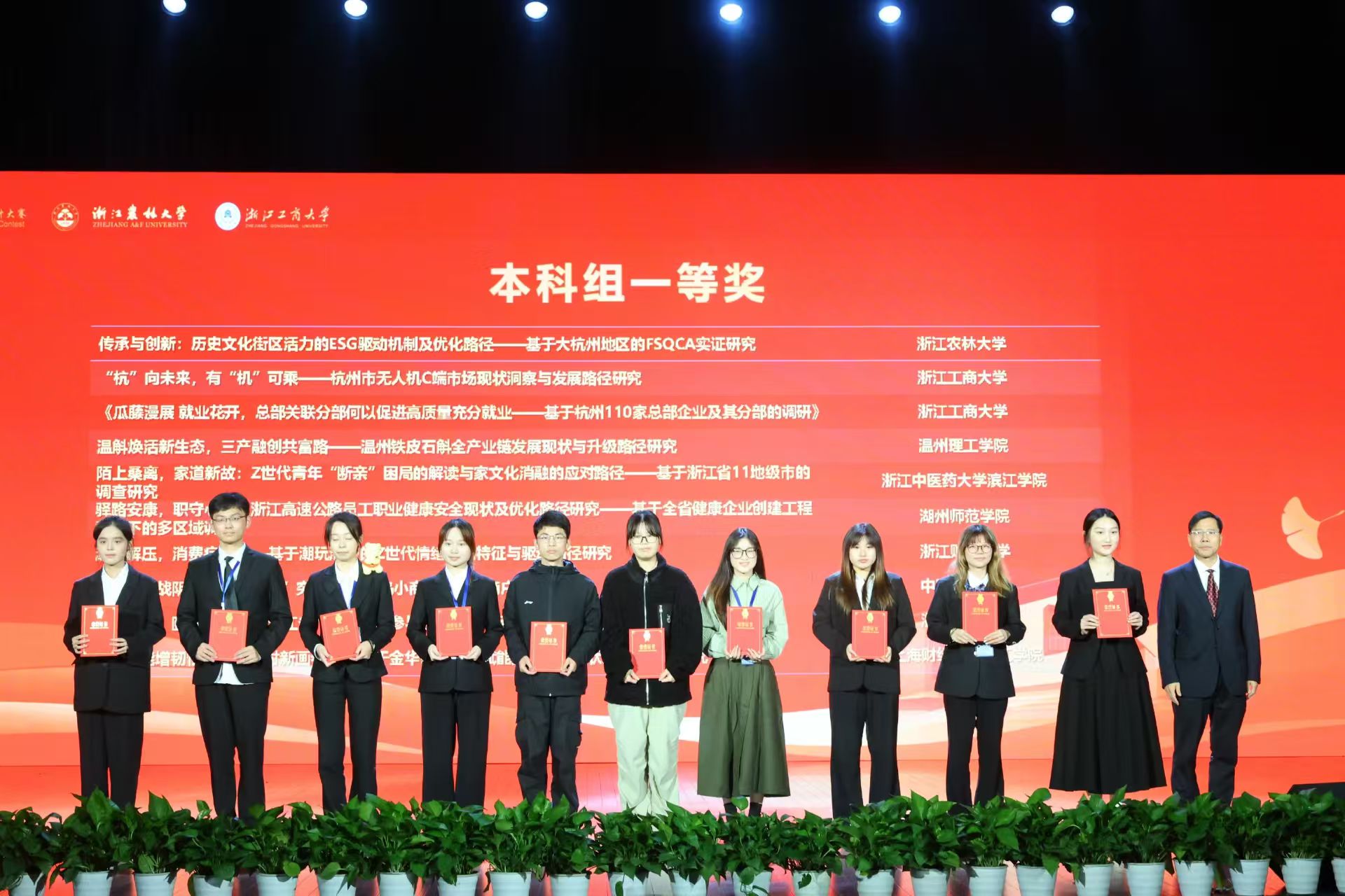 11月8日,由浙江省教育厅、浙江省统计局联合指导,浙江工商大学、浙江农林大学共同承办,浙江省统计局民生民意调查中心冠名的浙江省“民生民意杯”第十四届大学生统计调查方案设计大赛决赛在我校东湖校区落下帷幕。
