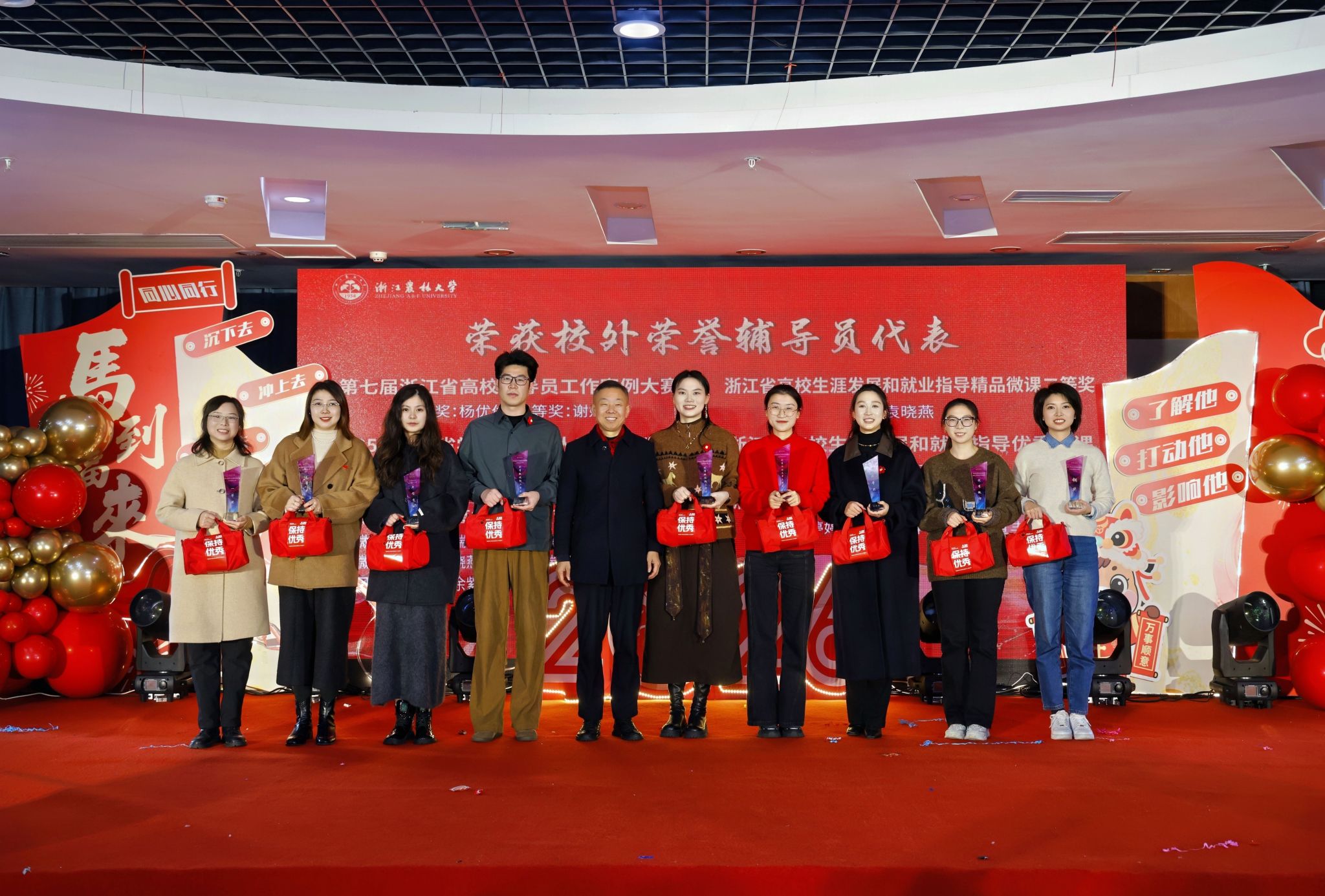 现场节目精彩纷呈,思政元素与艺术形式有机融合,引发阵阵掌声与欢笑。采访环节,邀请了“谈心谈话最多”“学生满意度最高”等辅导员代表分享心得,朴实话语中尽显立德树人的初心与坚守。荣誉表彰环节,荣获2025年度校外荣誉的辅导员、学校“优秀班主任和优秀导学团队”“优秀团委书记”“年度考核优秀辅导员”奖项的获奖代表上台接受表彰。