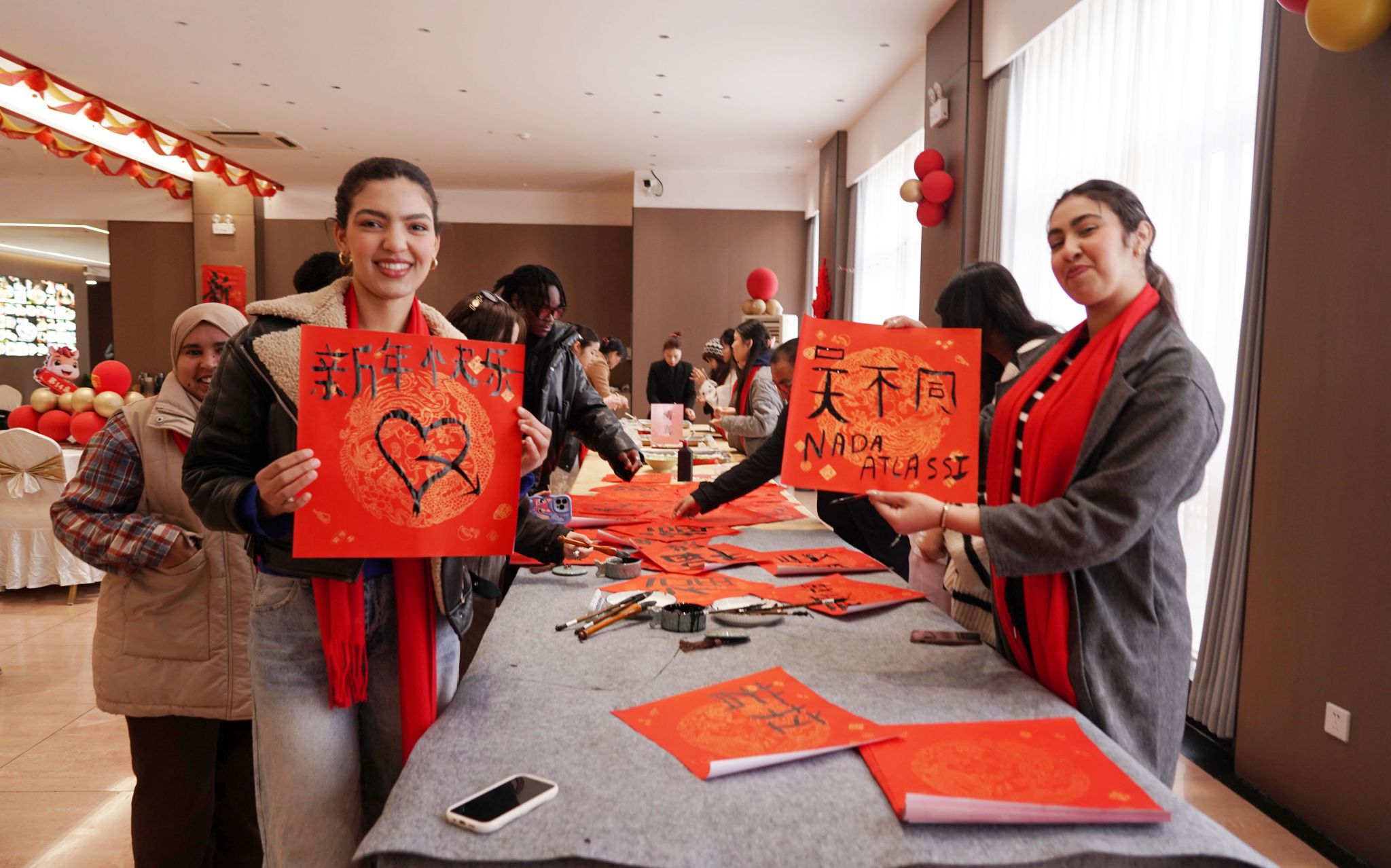 校领导还与师生们围站在一起,挽起袖子共同包饺子。一个个饱满的饺子,不仅寄托着大家对新春的美好祝愿,更拉近了师生间的距离。另一边,写春联活动同样热闹非凡。红纸铺展,墨香萦绕,师生们挥毫泼墨、笔走龙蛇,一幅幅寓意吉祥的春联跃然纸上。“骏马奔腾开胜景,春风浩荡展宏图”“瑞气盈门迎新春,温情满校护学子”,每一笔都饱含深情,每一幅都寄托着对新年的美好祝福和对师生们的殷切期望。