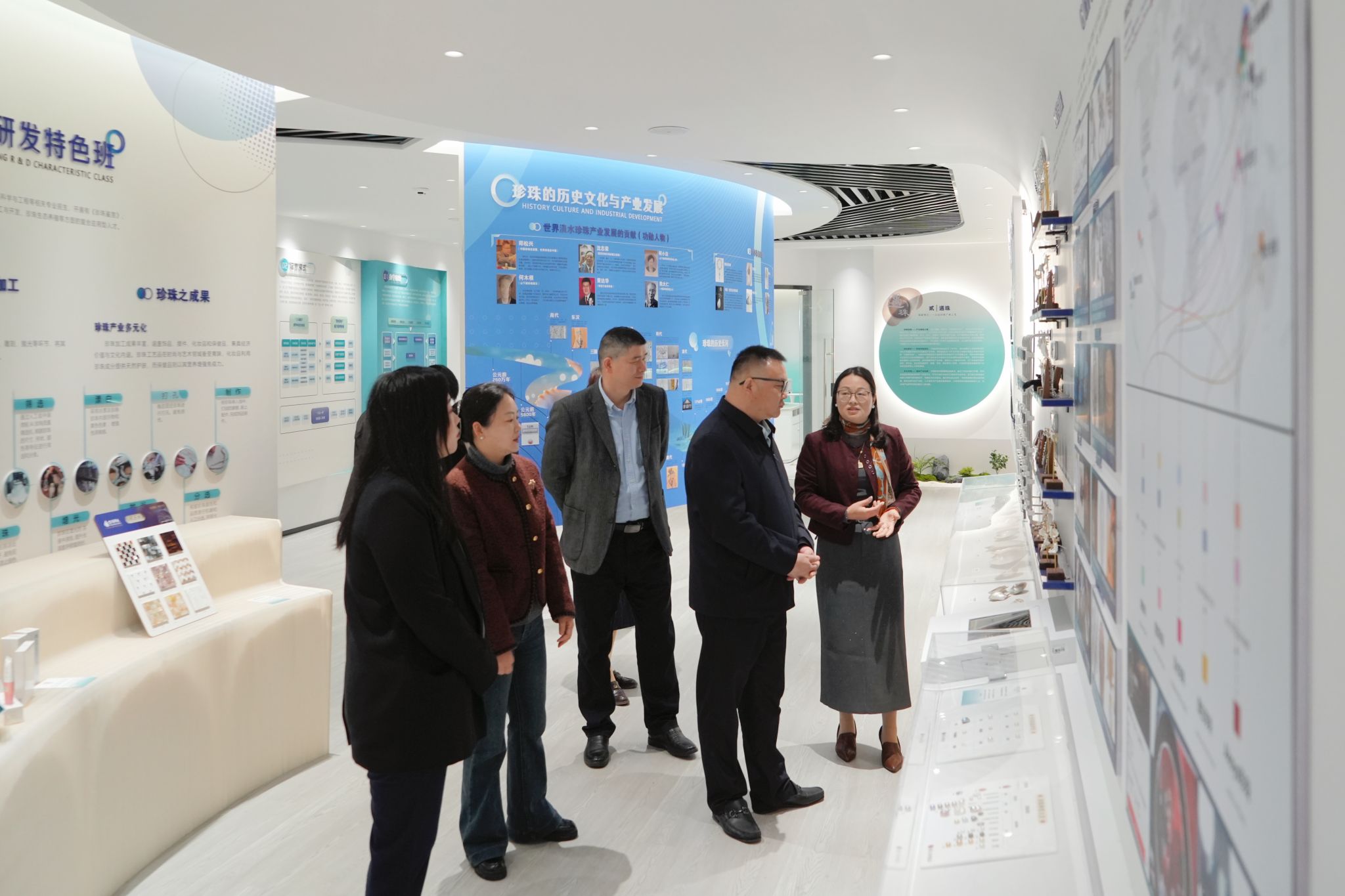调研期间,朱斌实地考察了中国珍珠学院和人工智能产业学院,深入了解产业学院的运行机制、人才培养模式和产教融合成效。