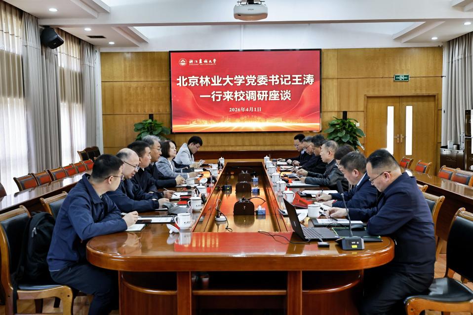 吴家胜介绍了我校近年来抢抓发展机遇,取得的办学成绩。他表示,浙农林大和北林依然存在差距和不足,北林在学科建设、科研创新、人才培养等诸多方面的宝贵经验,都是我们学习的标杆。他希望以此次调研为新起点,两校在平台共建、人才共育、科研共攻、成果共享上持续发力,携手为服务国家生态文明建设、推进林草事业高质量发展、助力乡村全面振兴作出新的更大贡献。