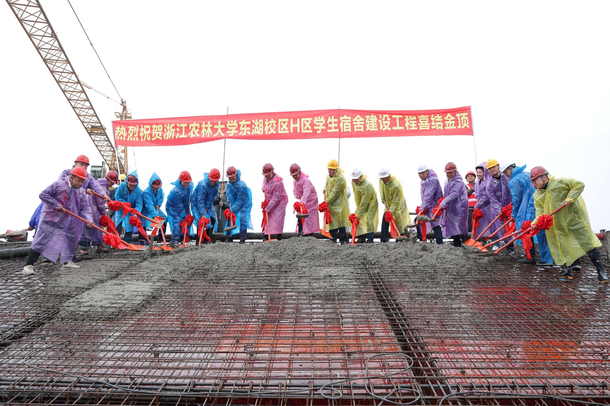 春雨淅沥,匠心筑梦。4月3日,东湖校区H区学生宿舍建设工程施工现场干劲十足,伴随着最后一方混凝土在雨中顺利浇筑到位,H区学生宿舍建设工程4幢宿舍楼主体结构圆满结顶。