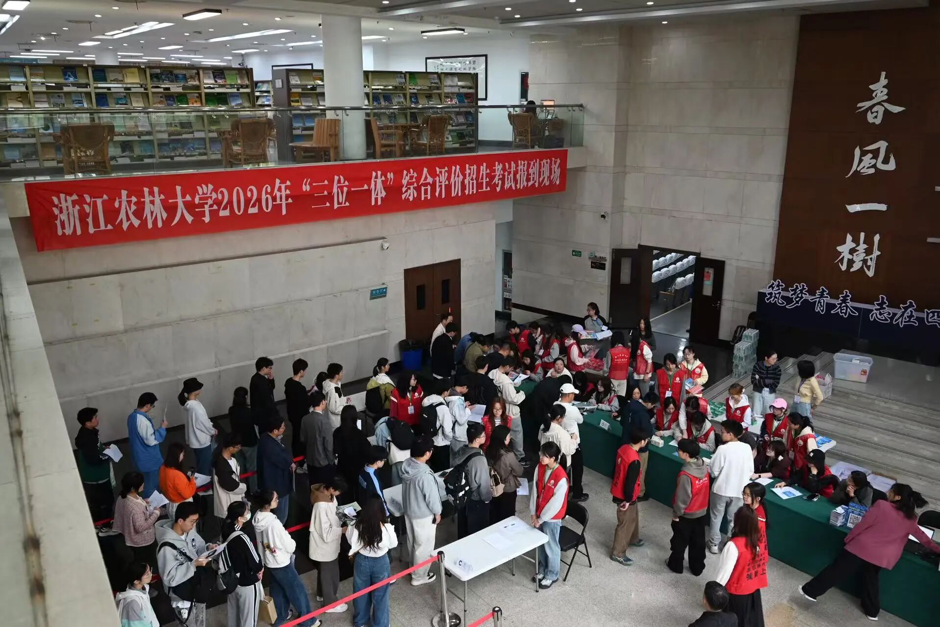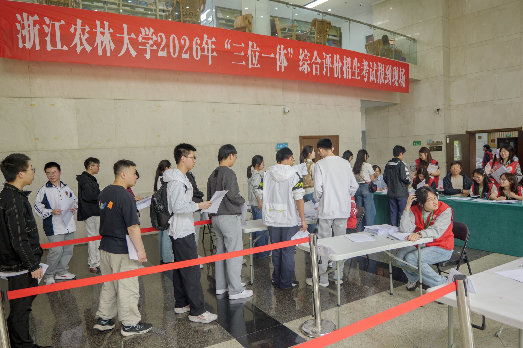 4月18日—19日,浙江农林大学2026年“三位一体”招生综合素质测试工作在东湖校区进行。今年学校招生计划为360人,经审查共有3157名考生通过资格审核,2417名考生缴费获得参加综合素质测试资格。