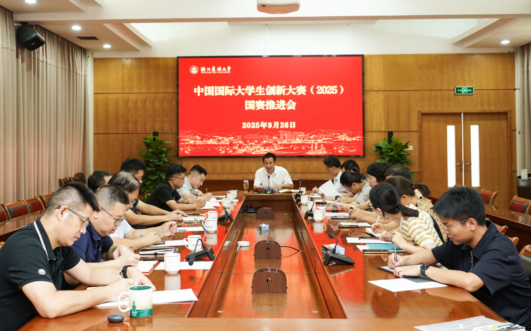 9月26日上午,学校召开中国国际大学生创新大赛(2025)全国总决赛备赛工作推进会,副校长徐爱俊主持会议。