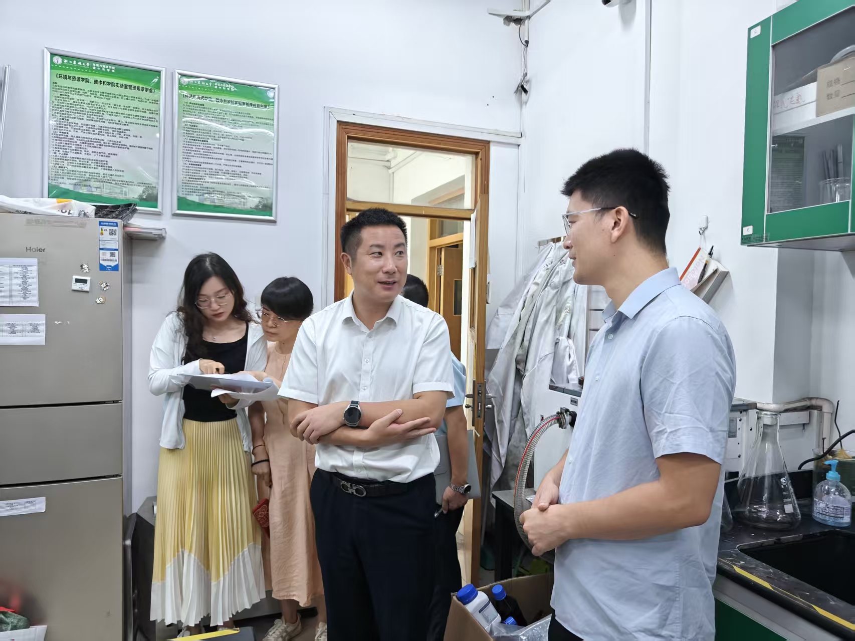 10月10日,副校长徐爱俊带队深入学校各实验室开展化学品安全专项检查。本次检查以具有高危险性的氢氟酸为核心排查对象,以“实地查看、台账核查、现场问询”相结合的方式,全面加强化学品全流程管理。
