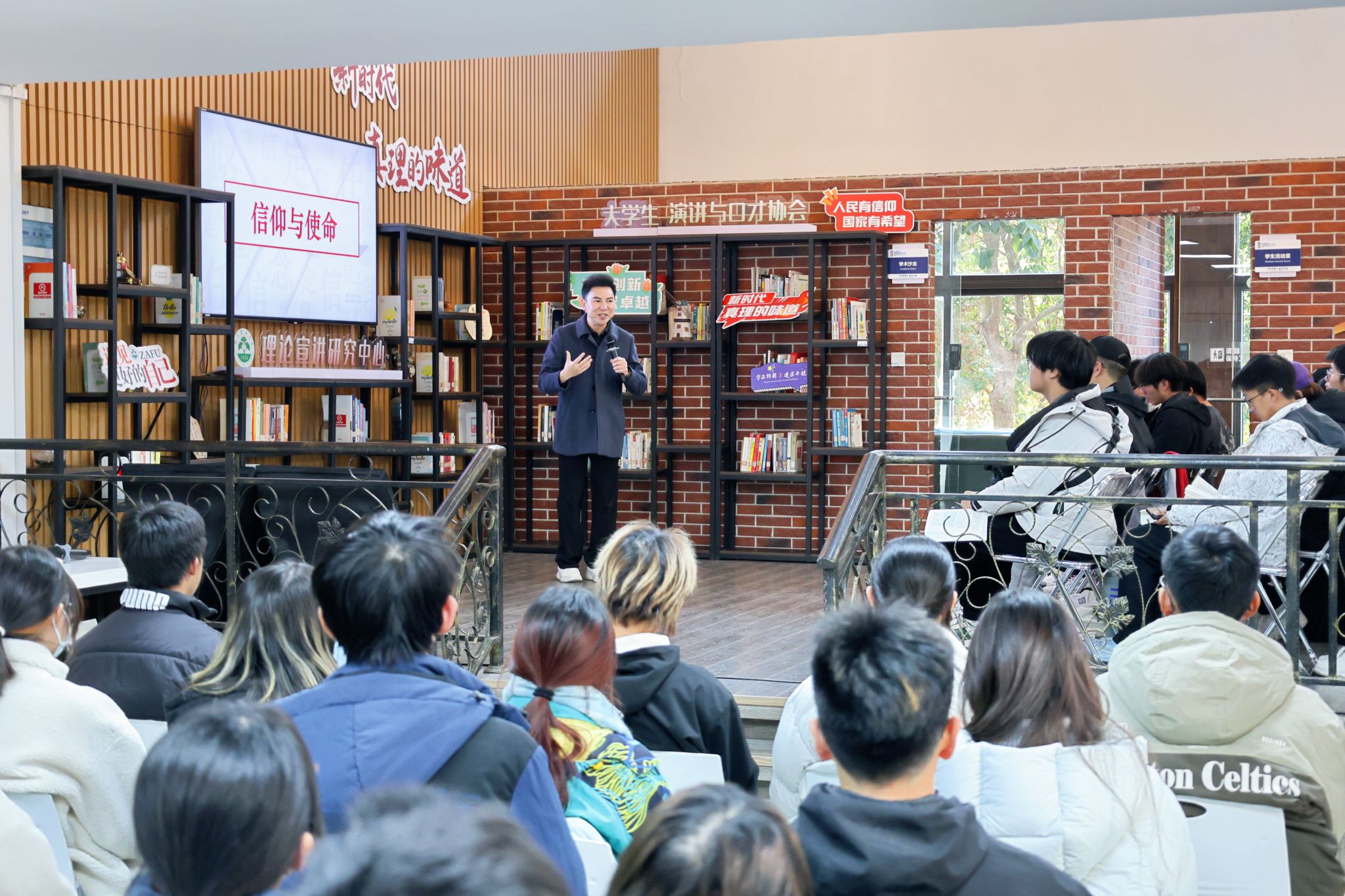 与传统课堂的单向讲授不同,这堂课由乡村运营师、小学生、学长学姐等多元身份组成的宣讲团,围绕“中华民族伟大复兴为何必然实现?”“中国共产党为什么能?”“如何在坚定信仰与牢记使命中,成就有意义的人生?”等议题,轮番上阵,生动讲述,巧妙地将历史与现实、理论与实践相串联。课堂上不时响起的掌声与热烈讨论,使得红色信仰在青春校园中焕发出新的生机与活力。