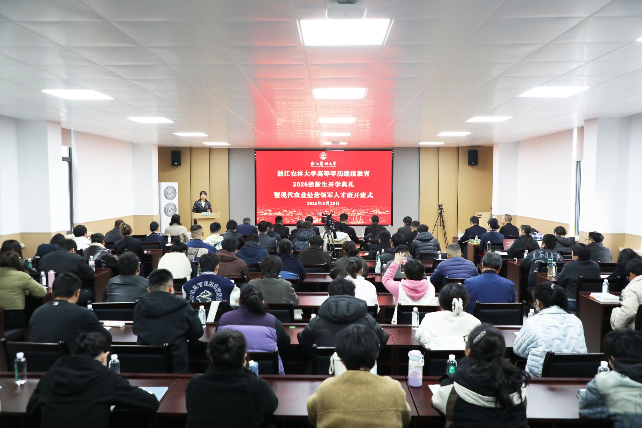 3月20日下午,我校高等学历继续教育2026级新生开学典礼暨现代农业经营领军人才班开班式在衣锦校区举行。副校长宋厚辉,浙江省乡村振兴促进中心副主任、浙江省农广校副校长王志荣等出席开学典礼并致辞。学工部、教务处负责人,继续教育学院领导班子,师生代表以及来自全省各地的5283名新同学们通过线上线下相结合的方式参加。