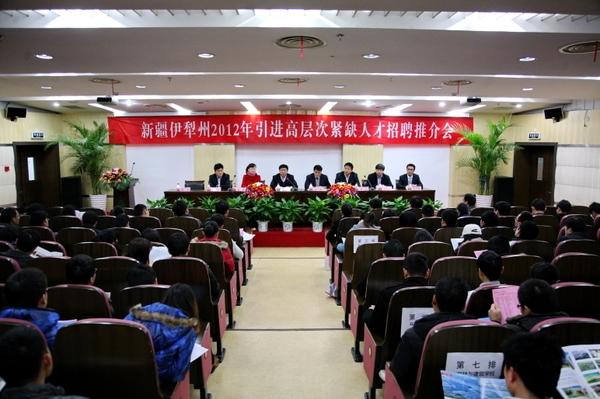 浙农林大新闻网讯 11月30日上午,新疆伊犁州2012年引进高层次紧缺人才招聘推介会在我校图书馆第二报告厅举行。推介会由副校长张立钦主持。伊犁州党委组织部常务副部长王刚,霍城县委常委、组织部长赵丽,察布查尔县委常委、组织部长张宏,新源县委常委、组织部长张斌,伊犁州党委组织部人才办副主任党万成等出席了会议。我校包括硕士、本科生在内的200余名毕业生参加了本次推介会。