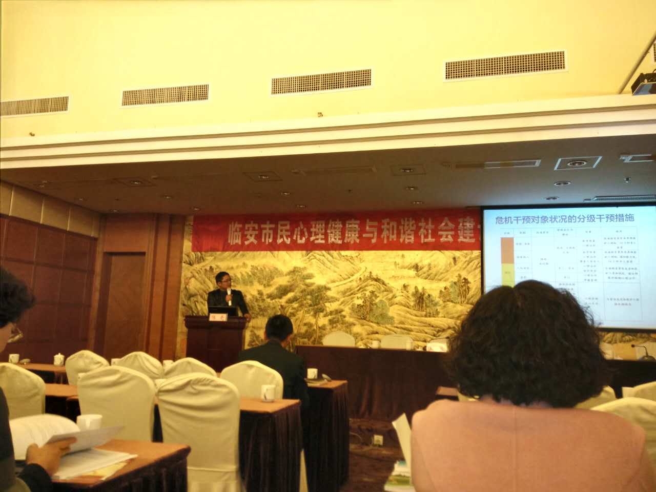 会议由协会理事长做2015年工作总结,并对研讨会优秀论文进行了表彰,我校教师陈亮,谭娟晖、董军强的论文分别荣获二、三等奖;随后,浙江省心理危机干预专家赵国秋教授和傅素芬教授、临安市安康医院副院长王铁平分别作题为《失独家庭心理干预》、《EMDR创伤心理治疗》和《抑郁症的识别与干预》讲座;最后,获奖论文作者代表同与会人员做论文交流,陈亮做为我校获奖教师代表,分享题为《精神卫生法背景下高校心理危机分级干预的探讨》的论文。