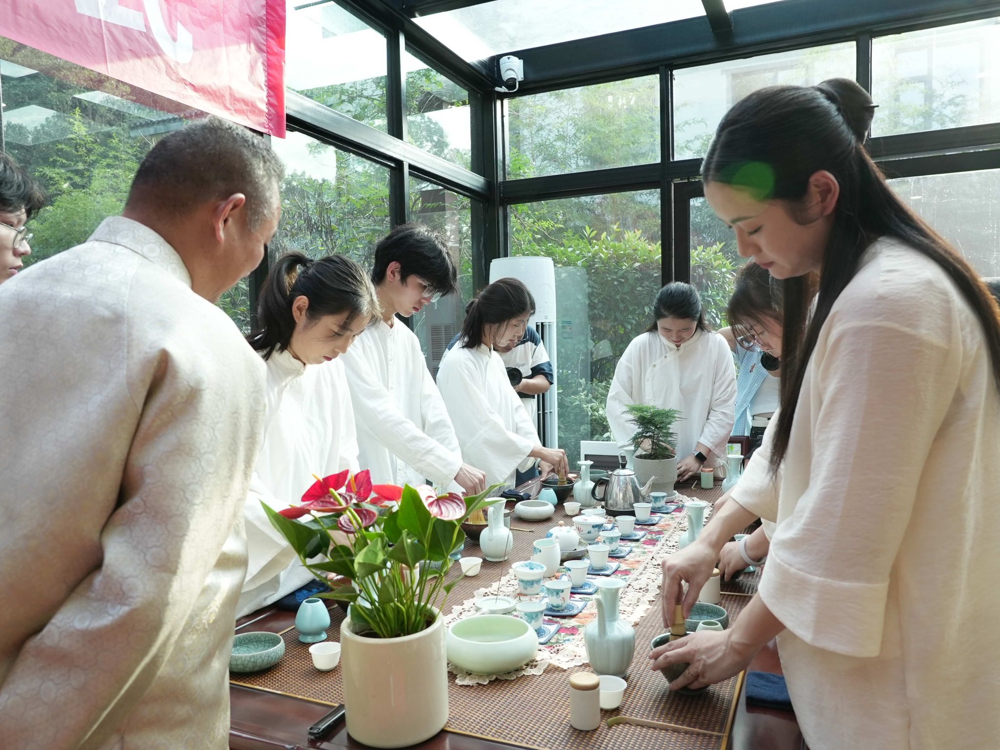 在浙江农林大学非遗研究院名誉院长、茅盾文学奖得主王旭烽,西湖龙井采摘与炒制技艺国家级代表性传承人樊生华等的见证下,九曲红梅茶制作技艺代表性传承人楼龙肖、柘荣高山白茶制作技艺代表性传承人刘水、桂花龙井茶制作技艺代表性传承人陈峥嵘通过一系列兼具象征性的庄严与圣洁的茶仪式,新收了7位弟子。