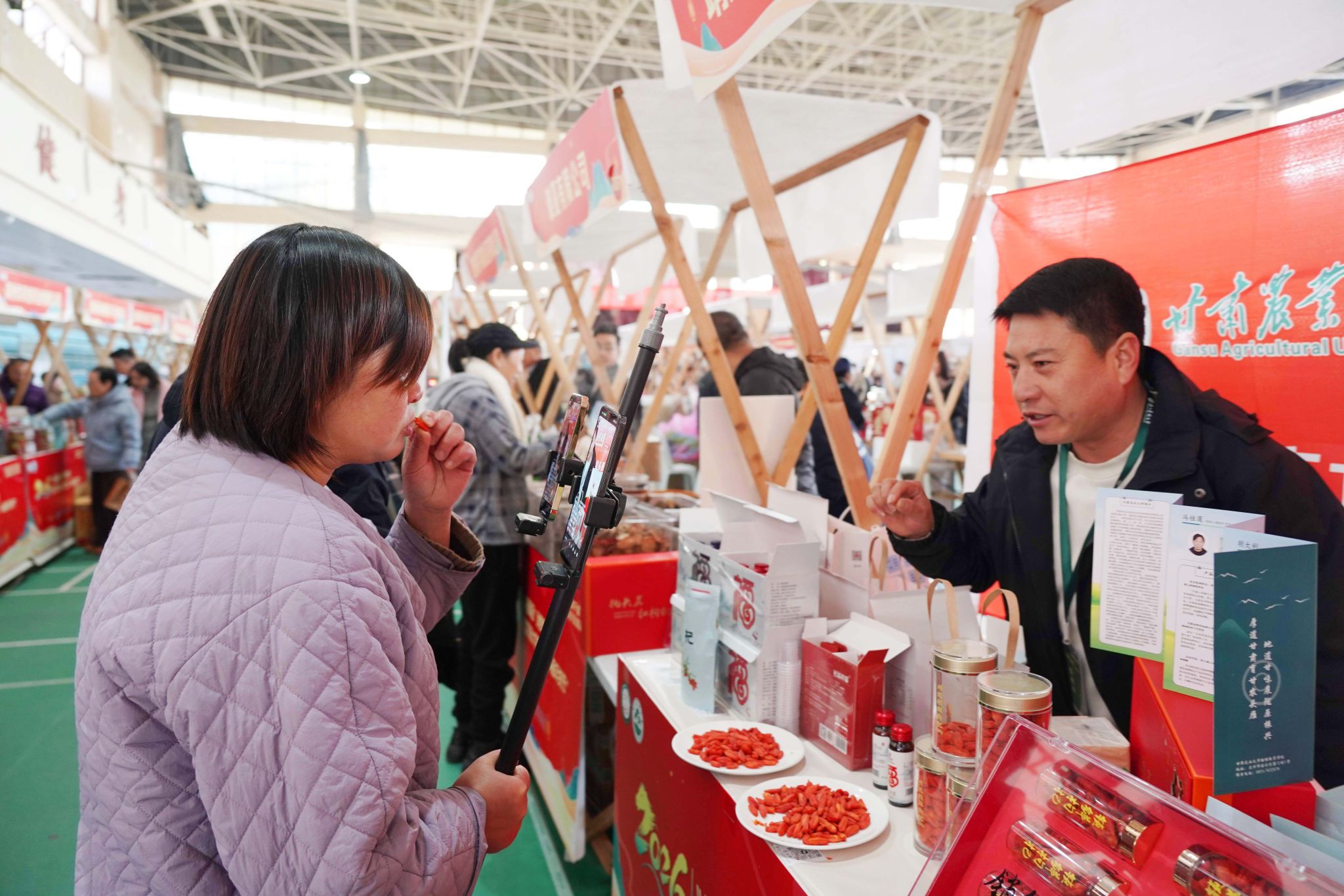 “头雁臻品”消费季暨浙江农林大学第三届“头雁年货节”, 展出了数千种优质农特产品和乡村产业服务项目,不少“头雁”还在现场进行直播带货。这些“年货”来自全国12个省份260余名“头雁”学员及其创办的企业、合作社,因其原生态高品质,再加上科技感满满、品种丰富,吸引了大家的好评。
