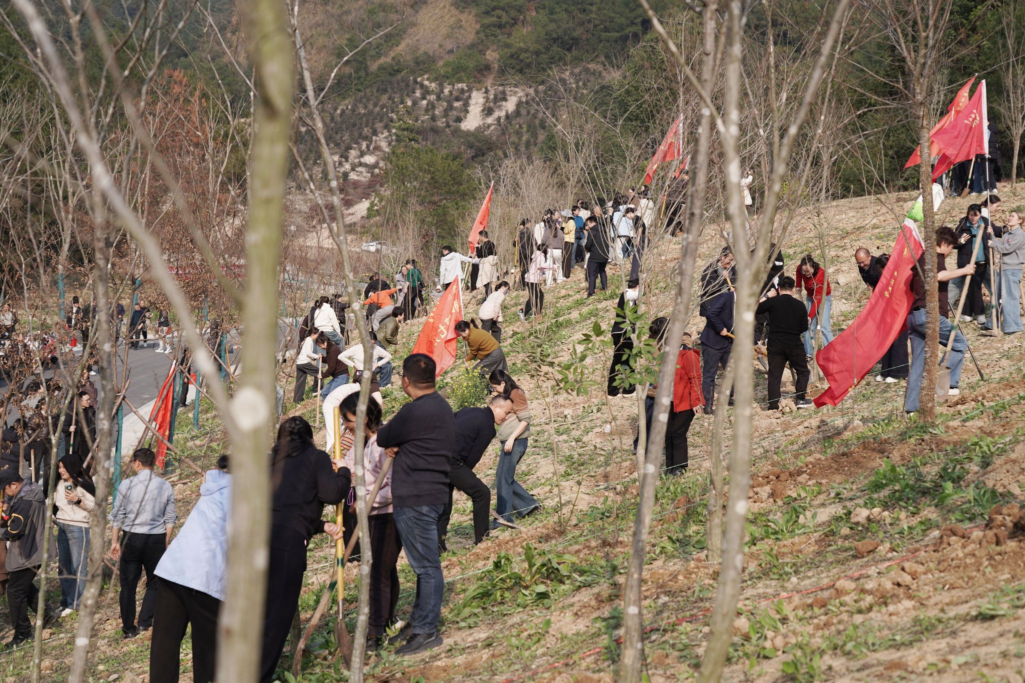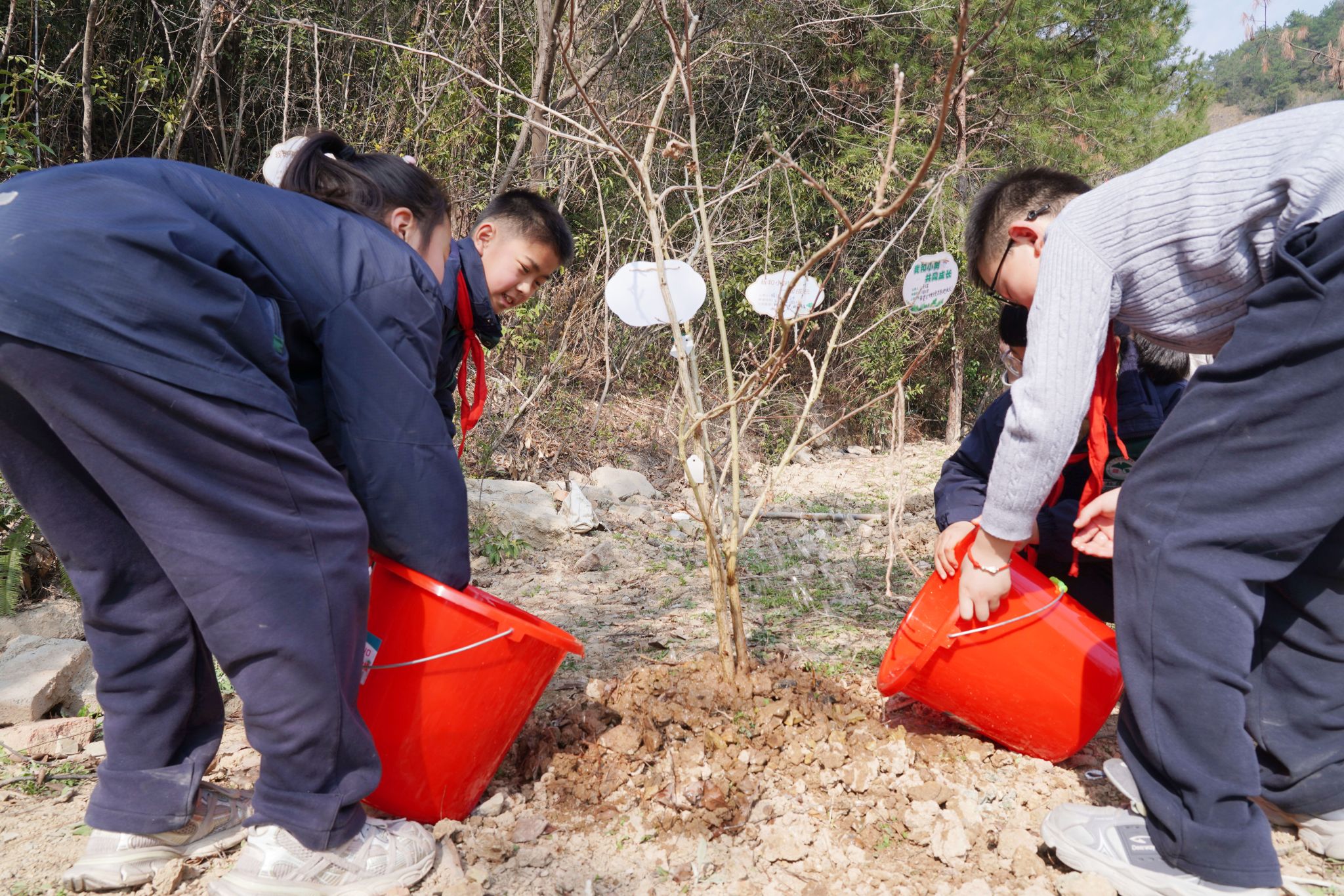 植树活动现场,浙江农林大学师生和来自学校附近的中小学生分工合作、密切配合,手持锄头、铁锹等工具,挖坑、扶苗、铲土、浇水……大家将银缕梅、巴山榧树、羊角槭、夏蜡梅、舟山新木姜子、滇藏木兰等一批树苗种植在校园里。在接下来的一段时间,该校3000余亩校园内,各种形式的植树活动、生态文明教育活动将如火如荼地开展。