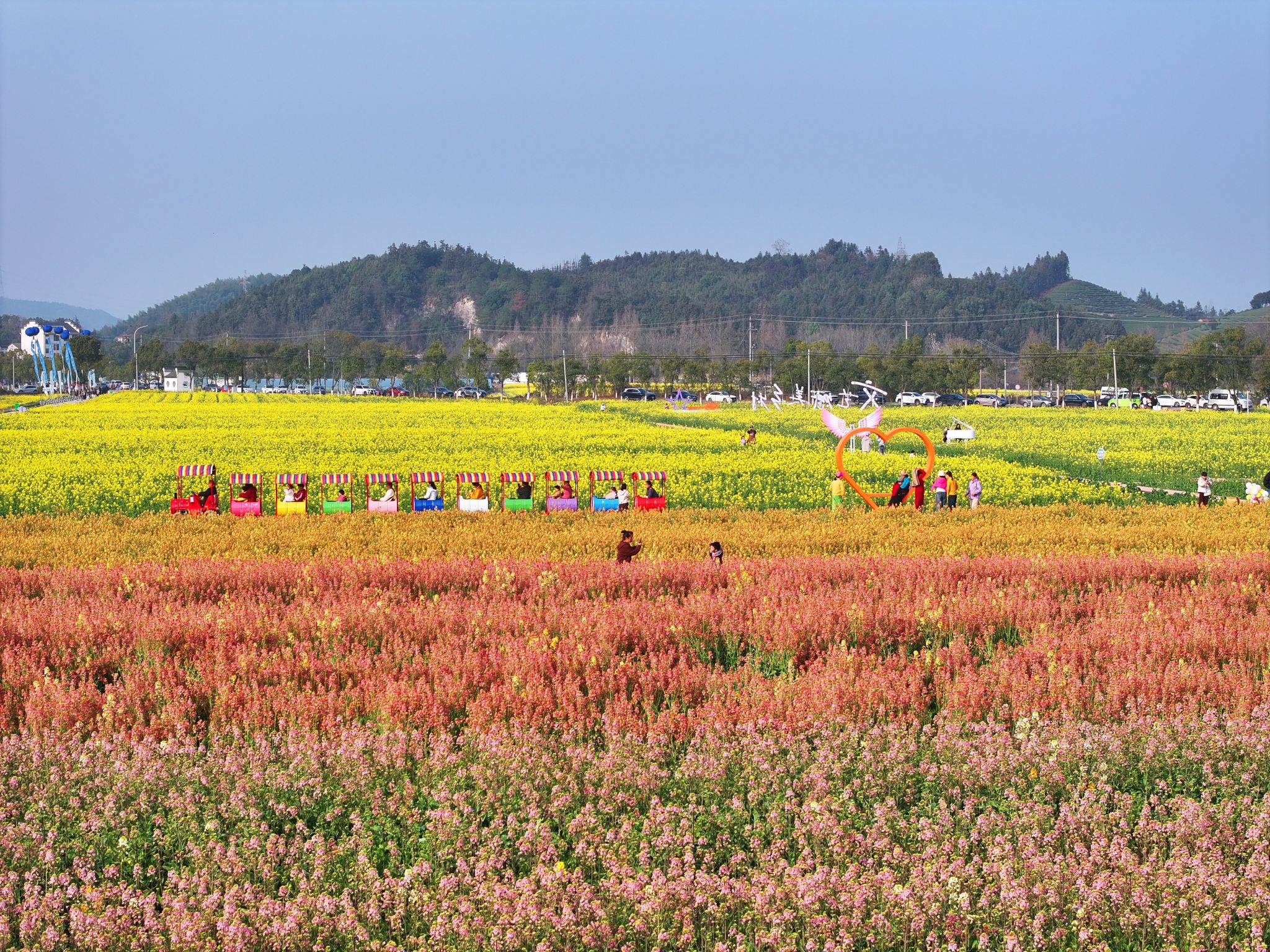 “彩色油菜基因来源仍为油菜,与传统油菜杂交后,安全性和出油率不受影响,兼具观赏价值与经济价值。”陈永根说,在他的指导下,大田乡人民政府还配套建设了观光步道、网红打卡点、稻田小火车等文旅业态,完善旅游基础设施。