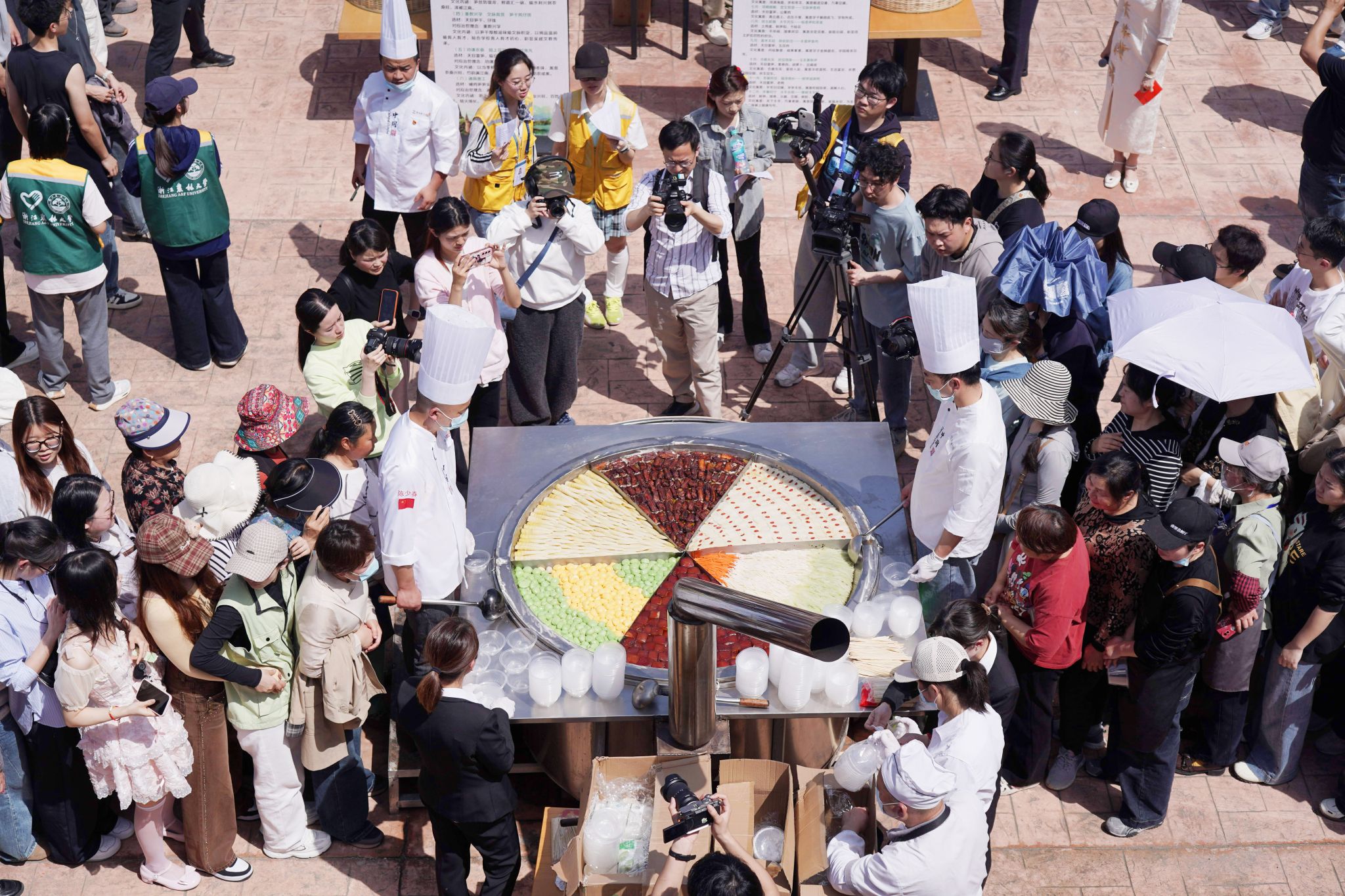 同期启动的“农家小吃・共富味道”市集,40个展位汇集全省各地特色小吃与农产品,按制作形式划分展示区、展销区及非遗美食限定区,成为连接田间与校园、农户与师生的“共富直通车”。市集还设置农产品展销区,实现特色小吃与原产地农产品联动,搭建起消费帮扶与文化传播的桥梁。