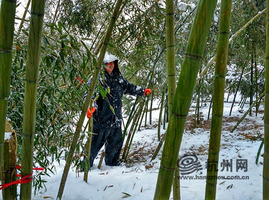 在组织科研人员做好研究基地应对暴风雪工作的同时,浙江农林大学竹类研究所的专家们也主动前往浙江省内外的竹子主要产区,和群众一起为竹林清除积雪,指导当地防雪救灾,将竹林的遭受雪灾的损失降到最低。