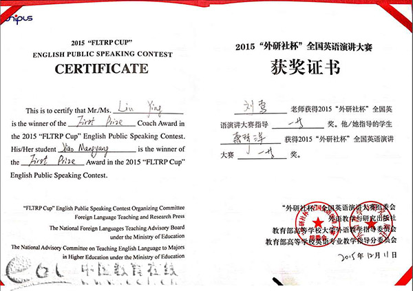 近日,2015年“外研社杯”全国大学生英语演讲大赛和“教学之星”大赛全国总决赛在北京外研社国际会议中心落下帷幕。浙江农林大学大三学生萧梦洋获全国大学生英语演讲总决赛一等奖,这是今年浙江省唯一获得一等奖的选手。此外,浙农林的教师郑榕获2015外研社“教学之星”全国总决赛一等奖。