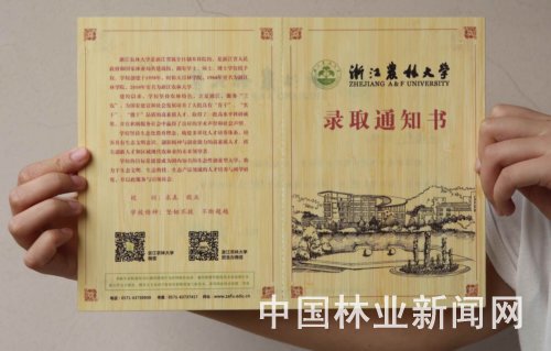 本报讯 7月15日,浙江农林大学招生办负责人透露,今年被浙江农林大学录取的本科新生,都会收到一份珍贵的礼物:以毛竹为原材料印刷而成的录取通知书。