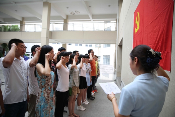 7月1日是中国共产党建党94周年纪念日。七一前夕,我省各地各校纷纷开展了党员集体宣誓、“我在党旗下”先进典型事迹宣讲会、红歌歌咏比赛、参观革命纪念馆等活动,重温党的辉煌历程,缅怀革命先烈的丰功伟绩。图为浙江农林大学师生新党员在党旗下庄严宣誓。