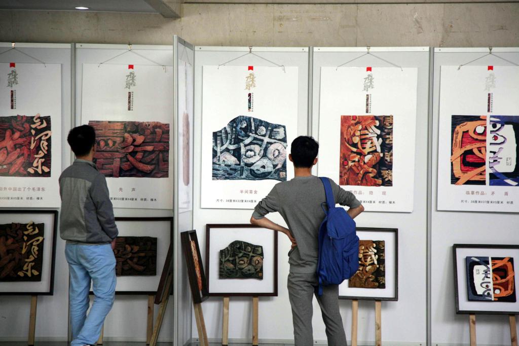 4月16日,在浙江农林大学图书馆举办“墨痕刀锋——许乐平书刻艺术展”,吸引了许多喜欢书法刻字艺术的大学生前来欣赏。许乐平是临安人,从事书刻艺术研究和创作,其作品曾多次在全国书法刻字比赛中获奖。