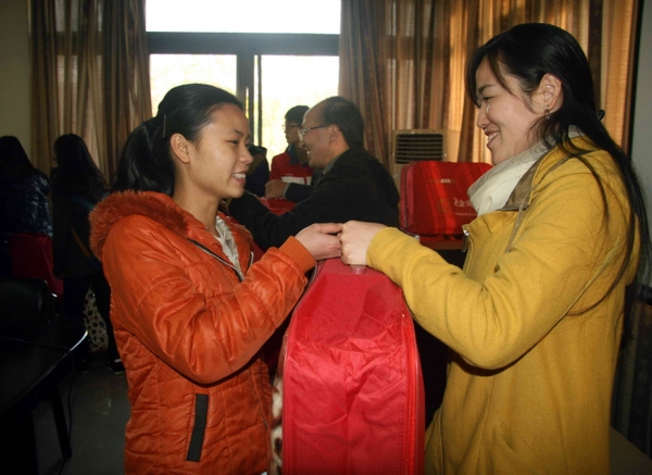 浙江农林大学所在的浙江省临安市刚刚(12月3日)下了今冬第一场雪,为帮助贫困生抵御严寒、安心学习,浙江农林大学各个学院纷纷开展送温暖活动,为贫困学生送上保暖用品。