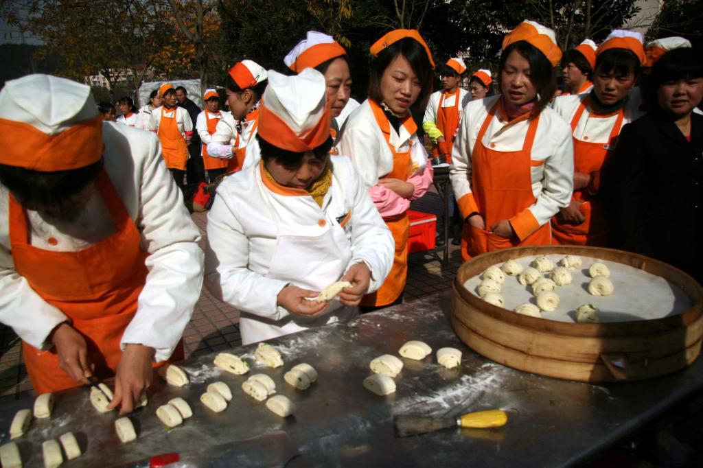 近日,浙江农林大学举行校园饮食文化节活动,食堂师傅在校园里进行切菜、烧菜、点心制作等项目的厨艺比赛,向广大师生展现自己的绝活。厨师李师傅说,比赛将厨房搬到了广场上,为的就是让师生都能知道每天吃的饭菜是干净卫生的,每道菜都是厨师精心烹饪的。
