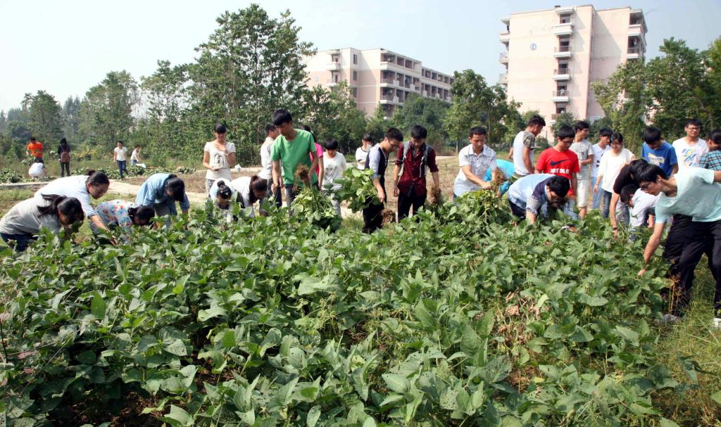 日前,浙江农林大学农学专业的学生来到校园里的小农场,采收上学期播种、现在已经成熟的大豆,体验丰收的喜悦。 浙江农林大学十分重视学生实践能力的培养,专门在校园里开设了面积达到数十亩的小农场,积极鼓励学生参加相关的实践活动,不断增强从事农业生产所需的综合能力。
