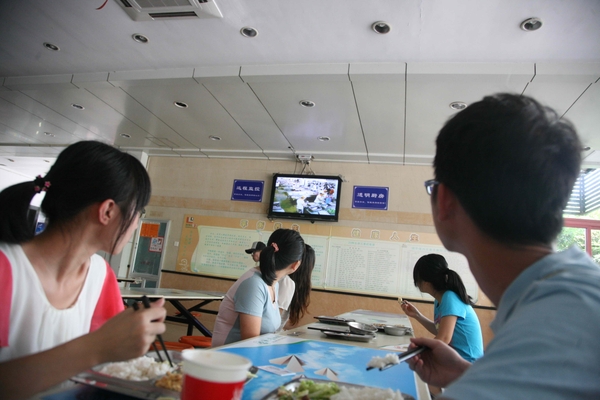 这段时间,只要你在就餐时间走进浙江农林大学东湖食堂,就会看到墙壁上的电视机,正在“直播”厨师烧菜、橱窗打饭等各个环节的情况,这一情景,吸引了不少就餐师生抬头观看。