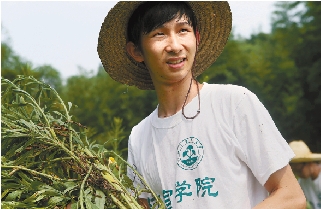 在田野上劳动的大学生周建。 |