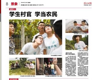 7月初,浙江农林大学村官学院200多名大学生,来到丽水、衢州、温州和临安、富阳等地农村,学当农民,与农民同吃、同住、同劳动。