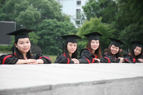 昨天,浙江农林大学的应届毕业生身穿学士服,在校门口拍摄合影庆祝毕业,成为校园里一道靓丽的风景。