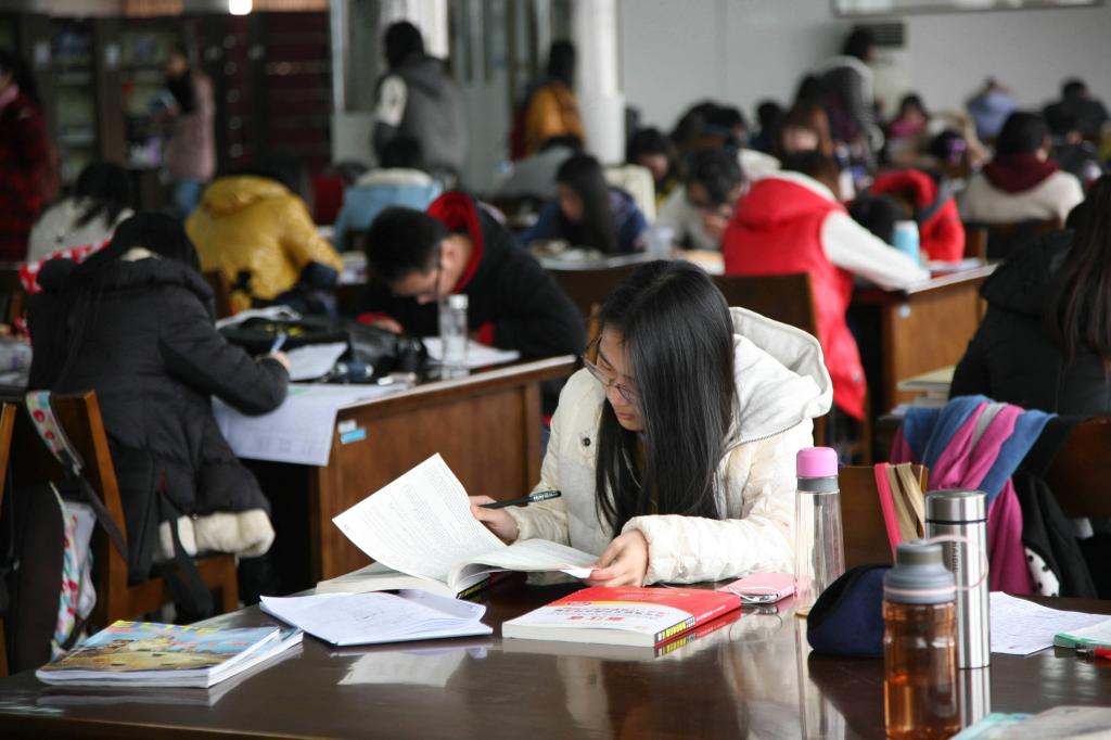 一年一度的研究生考试大幕即将拉开。此时,成千上万的考研人还在低头苦读,为自己加油打气,希望可以在考场上多得几分。图为浙江农林大学图书馆里坐满了正在进行期末复习的学生,即使平时不够勤奋的学生也都成了“学霸”,为了考个好成绩而努力。