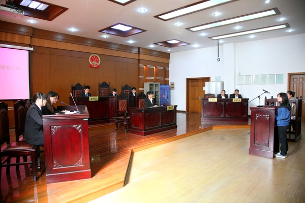 2013年11月23日,浙江农林大学模拟法庭的学生法官正在开庭审理案子。 浙江农林大学模拟法庭成立近10年来,学生法官们通过不定期开庭审理学生身边的纠纷和案例,不仅引导大家明辨是非,而且让相关专业的同学能够更好的了解审判及仲裁的过程,提高学生法律文书的写作能力。