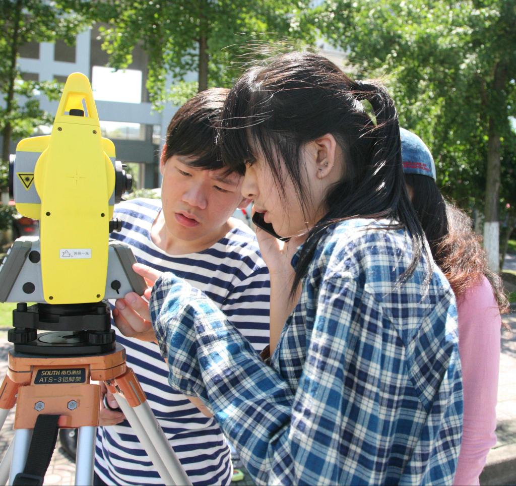 7月2日,浙江农林大学地理信息系统专业的学生,在校园里进行《测量学》课程的专业实习。