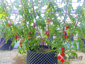 赵颖雷说,果蔬墩式栽培标准化生产技术已在德清农田进行过长期的试验和研究,如今,已经在学校教学楼顶平台试种过多种果蔬,如“东方蜜1号”哈密瓜,以及品种分别为“黑珍珠”(紫黑果)、“粉娘”(红果)、“绿宝石”(绿果)、“黄妃”(黄果)的多色樱桃番茄,而且都已经成功结果。