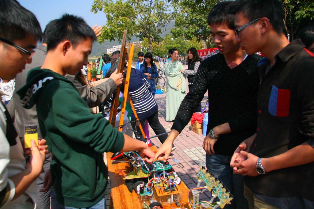 10月20日,浙江农林大学学生制作的机器人、家具模型等创新作品,吸引了很多学生参观,不少学生还参与创新创业学生代表评选中。