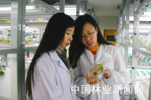 本报讯 2月15日,浙江农林大学森林培育学科的两名学生,在学校智能实验室里观测植物组培苗的生长情况。新学期刚刚开学,浙江农林大学的很多学生就开始走进实验室,希望通过科研实践活动增强自己的创新能力。
