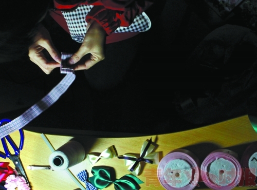 包小燕是研究生一年级学生,学的是服装设计专业。说起自己选择服装设计专业的原因,她说,自己的老家在湖北省农村,母亲是当地有名的裁缝,正是依靠裁缝的手艺,包小燕的妈妈支撑起了整个家庭。在妈妈的耳濡目染下,包小燕从小就喜欢缝缝补补,偶尔也制作一些小衣服,考取浙江农林大学研究生后,她开始尝试制作蝴蝶结并进行销售。“虽然读研究生是国家公费的,但生活费、住宿费还是要钱的,我觉得自己已经读研究生了,就不能再向家里要钱了。”包小燕说,一开始她依靠自己掌握的裁缝手艺,模仿制作市场上各种头花,然后慢慢地利用自己的专业所长,开始设计很多市场上没有的头花,并且接受顾客的定制。