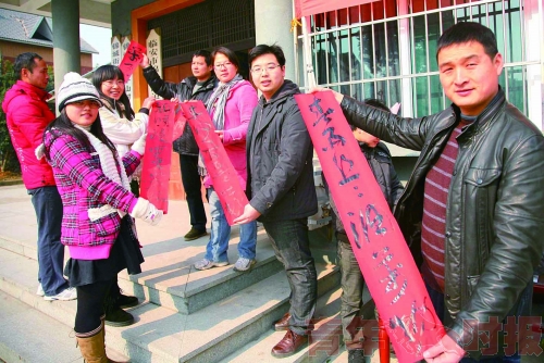 日前,中国计量学院零点调查协会的大学生们来到杭州“草根之家”(“草根之家”是杭州一家为农民工服务的公益机构),为那里的农民工朋友写春联、送春联,与他们一起庆祝春节来临。