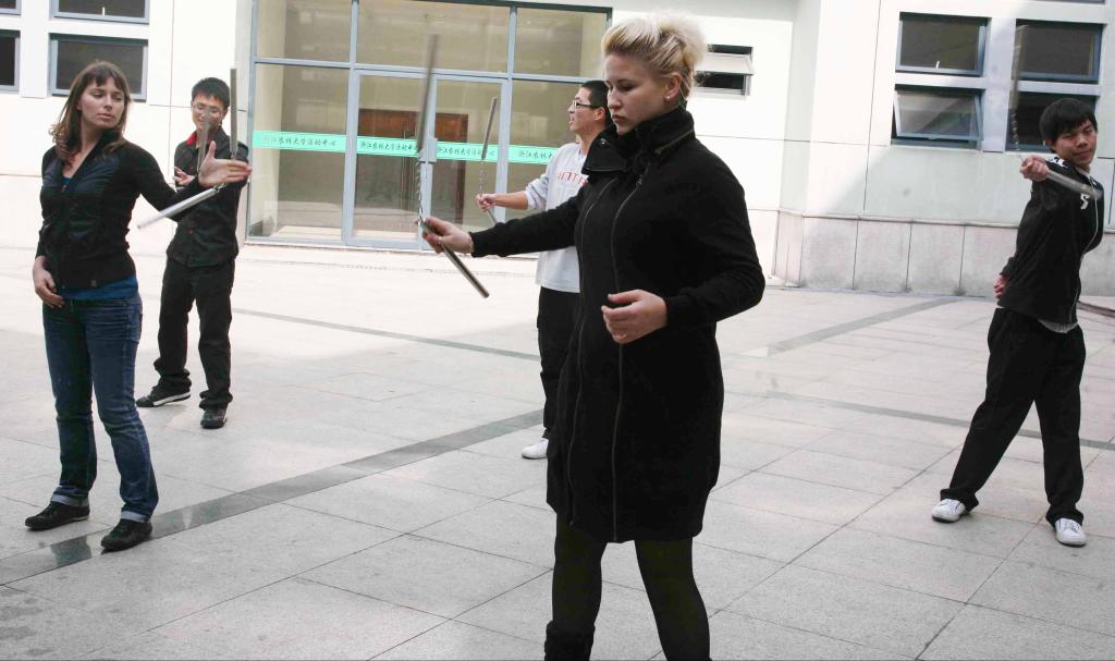 伊娜和陆冰都来自乌克兰,他们和该校的其他30多名乌克兰留学生一样,是今年9月份开始进入浙江农林大学的,他们将在该校进行为期4年的国际贸易专业的学习。在努力学习汉语和专业知识以外,很多乌克兰的留学生,都十分积极地加入了该校的学生协会,从小就喜欢中国武术的伊娜和陆冰,最终选择了该校的双节棍协会。