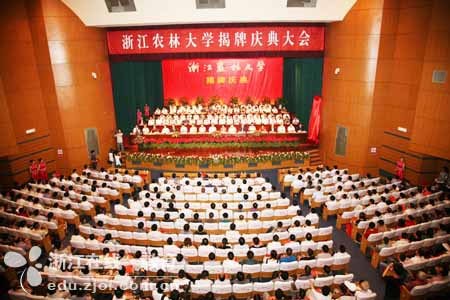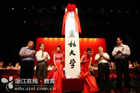 浙江林学院今天正式更名为浙江农林大学,这也是浙江省唯一以农林学科为特色的多科性大学。省委书记、省人大常委会主任赵洪祝,省长吕祖善分别发来贺信。浙江省政协主席周国富为学校揭牌,省委常委、副省长葛慧君致辞,省人大常委会副主任程渭山出席揭牌庆典大会。