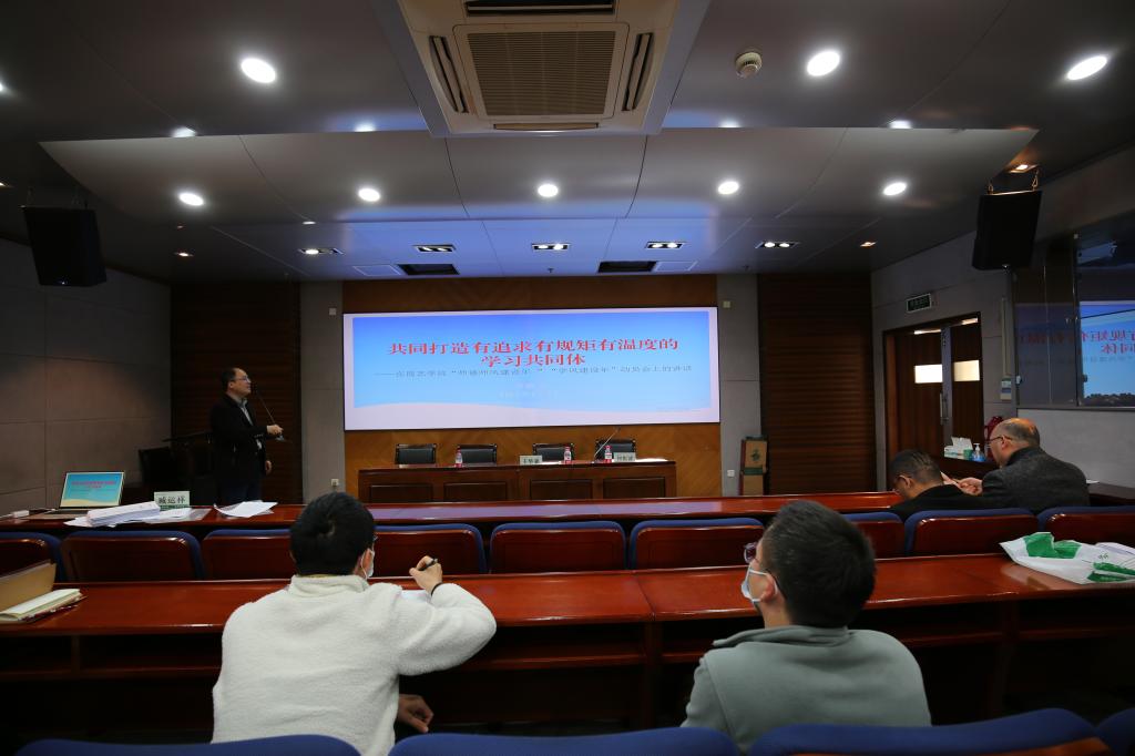 2022年为学校“师德师风建设年”“学风建设年”。为推进落实系列工作,何振波以《共同打造有追求有规矩有温度的学习共同体》为题,向全院教职工和学生骨干代表作动员讲话,重点就学校动员会和有关文件精神进行了解读,对学校着力实施铸魂、清风、厚德、树美、护航、立规、明理等“师德师风建设年”七大行动,深入实施优良教风带学风、求真务实厚学风、协同创新强学风、朋辈互助浓学风、文化引领优学风、高效管理督学风、优质服务促学风等“学风建设年”七大举措进行了简要说明。