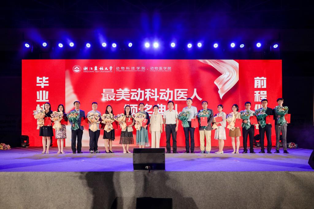 晚会中,校党委副书记施美红、动科动医学院名誉院长方维焕等领导共同开启了现代动物智能医疗产业学院建设之门。晚会还隆重表彰了徐义刚等14位动科动医“最美教师”、余紫薇等10位动科动医“最美毕业生”,为学院“首届特优生”获得者李诗如、朱婷婷颁发了独具院情、特具匠心的特优生纪念金章和奖牌。