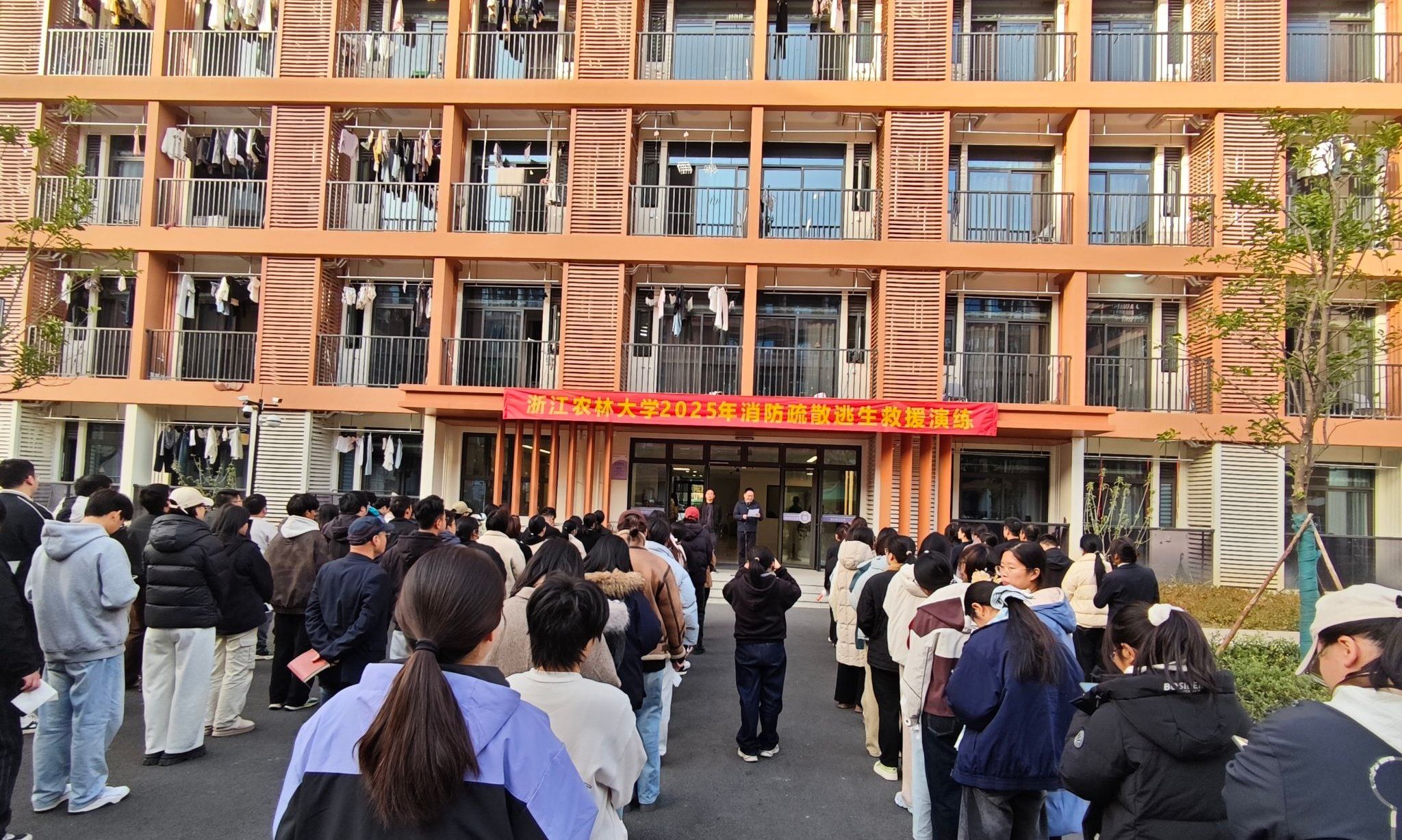 11月27日,由校综治委主办,保卫部、后勤服务中心、临安区消防救援大队承办的消防疏散逃生救援演练在D2学生公寓开展。