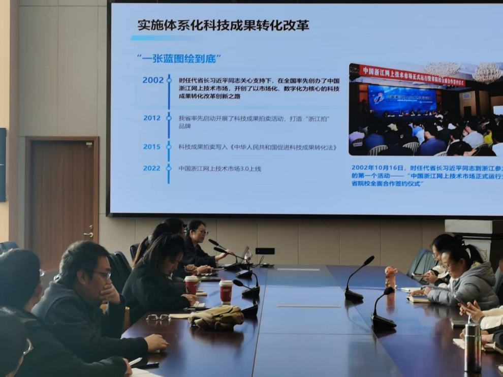 11月28日,合作处邀请到浙江省科技评估和成果转化中心副主任饶馨,为新成立的技术经纪人队伍开展培训讲座。