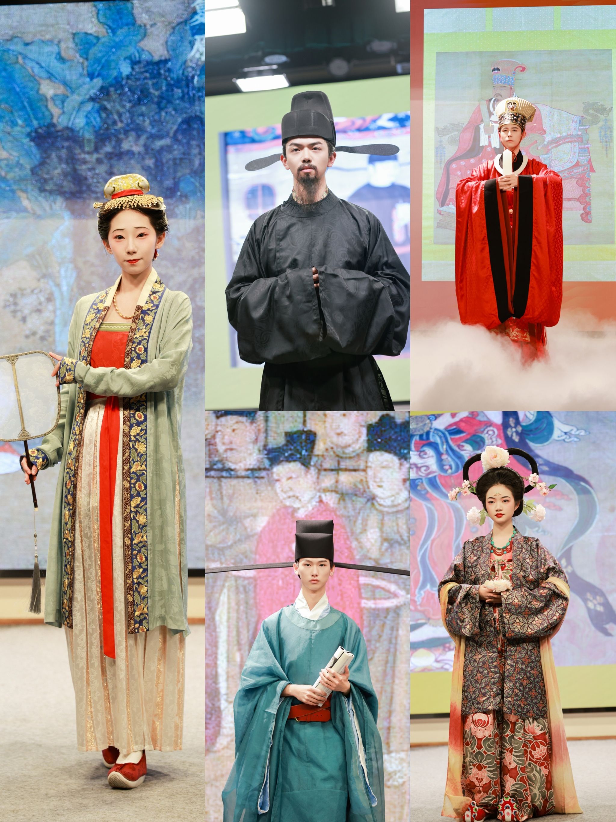 活动伊始,“华夏衣冠·历代服饰秀演”率先登场,引领观众步入一场华夏美学巡礼。在陈诗宇博士的指导下,中国衣冠古代服饰复原团队与我校0step礼仪形象团、梵风剧社及服装设计专业学生,共同呈现了周汉、隋唐五代、宋代至明代12套代表性复原服饰。整场秀演以严谨考据为基础,以工艺复原为核心,通过服章之美系统展现中华服饰多元而丰富的演变脉络。每一套服饰皆定格为一个时代的剪影,共同勾勒出一幅流动的文明长卷。观众在沉浸式的情境中“跨越千年”,感受传统服饰在历史与现实之间的流动与回响。