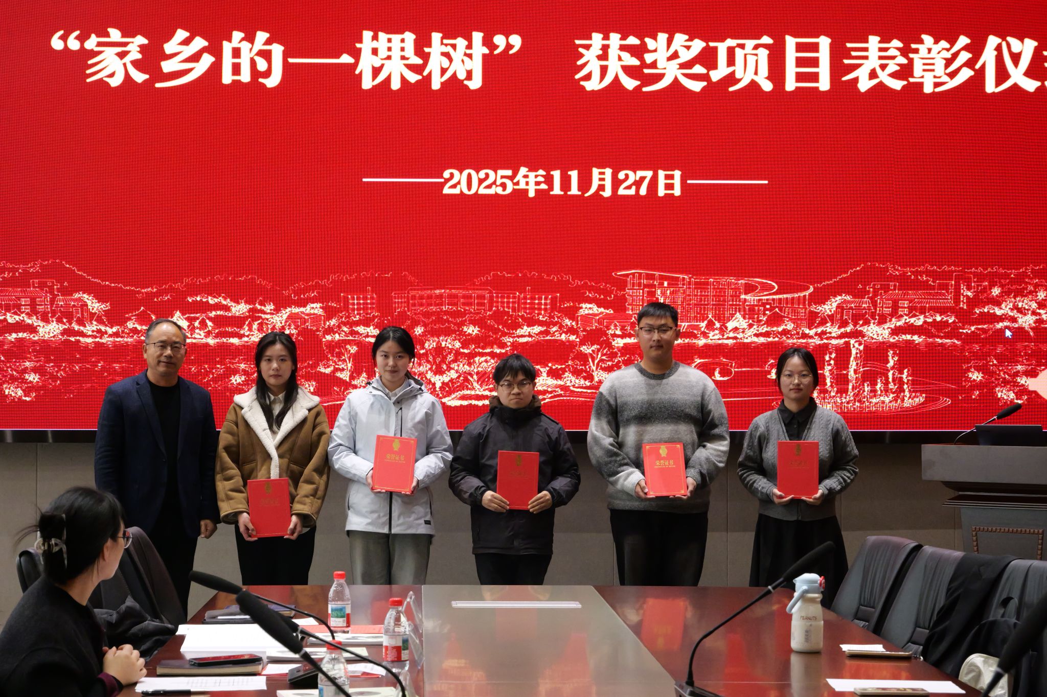会上,与会领导为获得一、二、三等奖的25项优秀实践作品的优秀团队和个人进行表彰,激励我校学子持续投身古树保护事业。