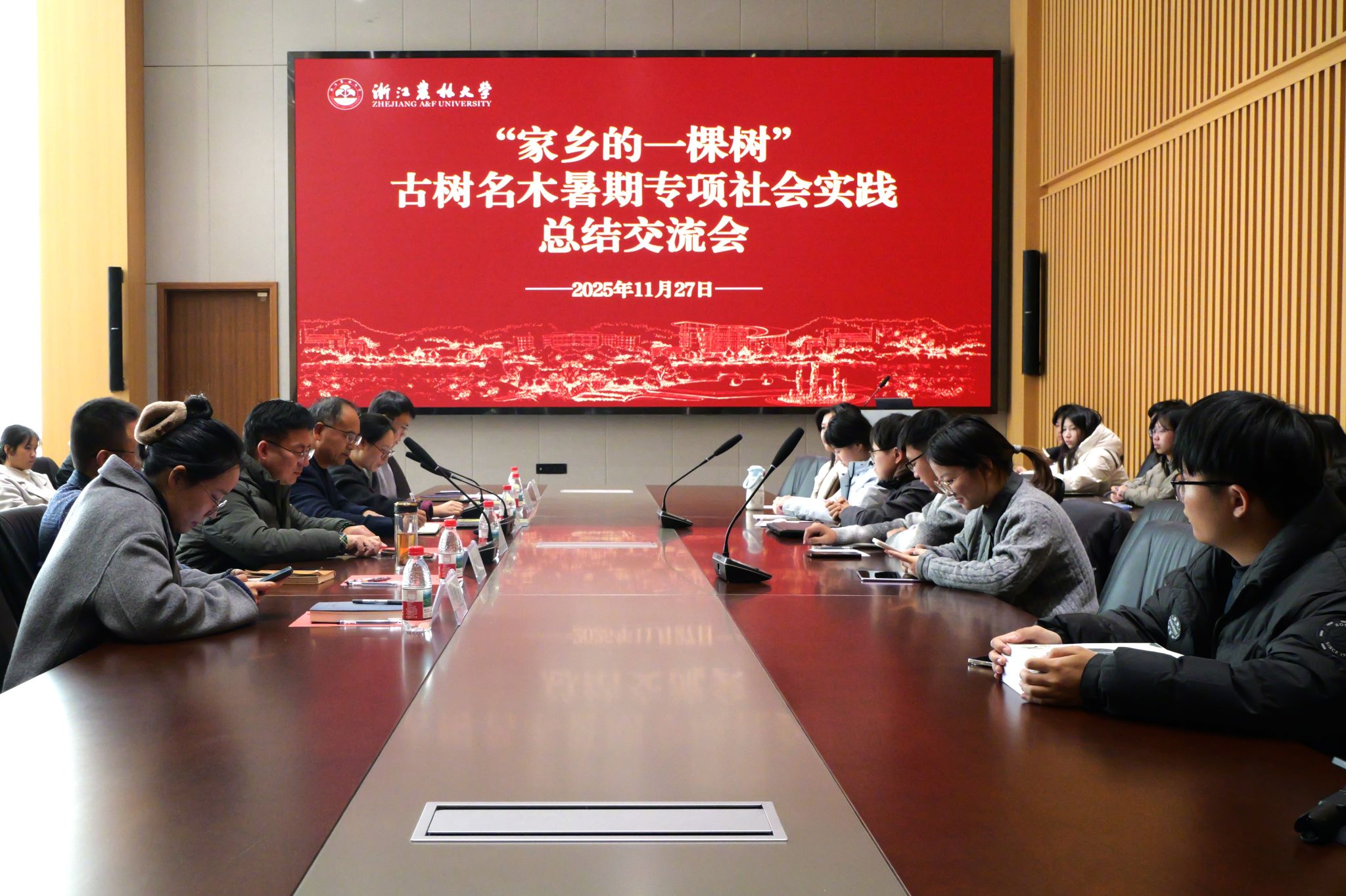 11月27日,浙江农林大学“家乡的一棵树”古树名木暑期专项社会实践总结交流会在全国重点实验室401报告厅举行。浙江省古树名木保护基金会理事长、古树名木保护研究院院长胡祖吉,校新闻中心主任,宣传部、教工部副部长陈胜伟,林生院学生工作负责人等领导嘉宾出席本次活动。专项实践获奖团队代表、各学院学生代表参会,校团委书记胡云云主持会议。