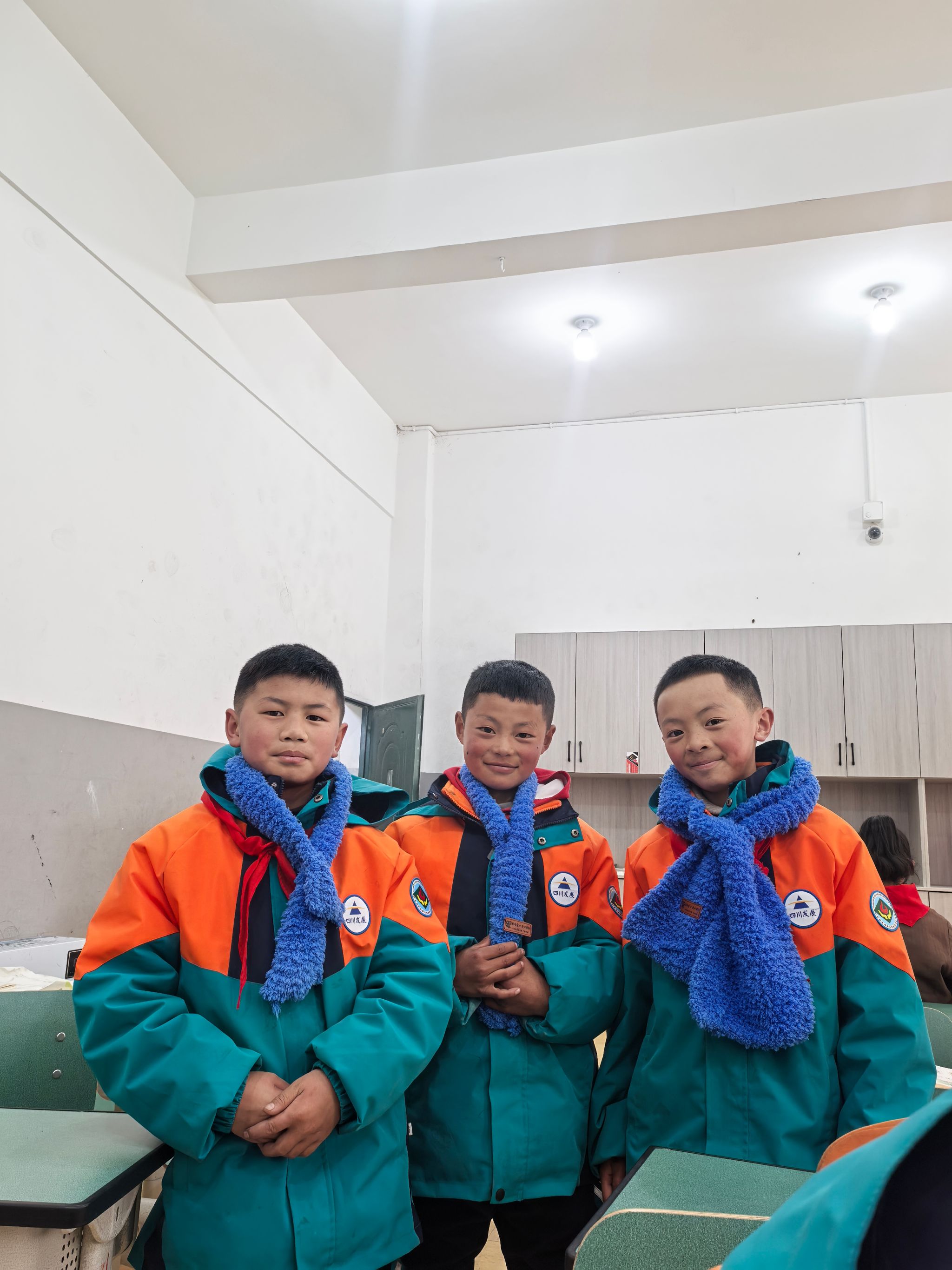 这批满载心意的围巾,最终送到了白玉县第二完全寄宿制学校500名小朋友的手中。捐赠仪式由共青团白玉县委副书记二西克格主持,当孩子们亲手把围巾围在脖子上,一张张稚嫩的脸庞瞬间漾起灿烂的笑容。