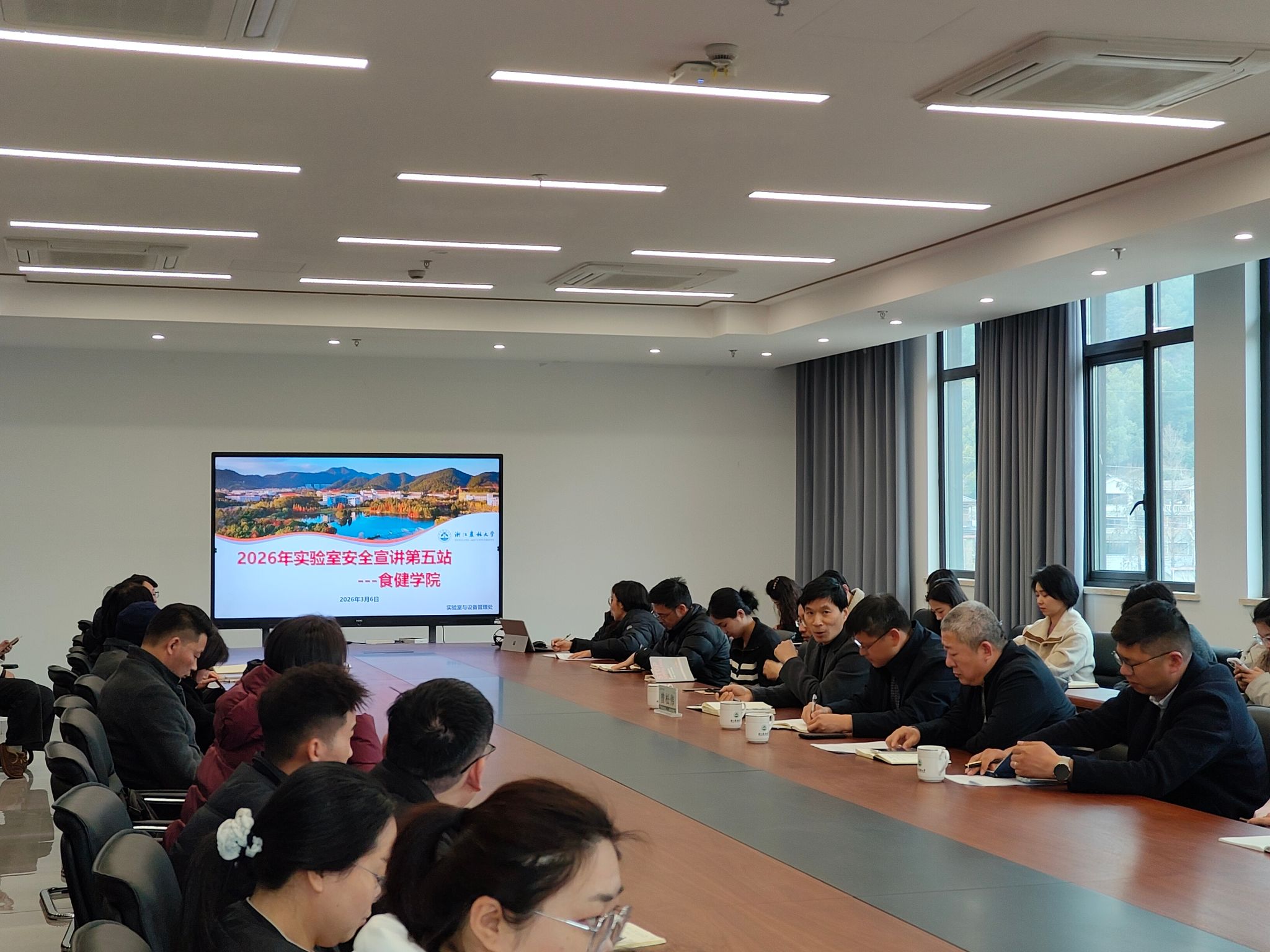 3月6日下午,食健学院在学19-502举办学期初实验室安全专题培训。本次培训特邀实验室与设备管理处处长曾松伟担任主讲,学院党政领导班子及全体教职工参加培训。