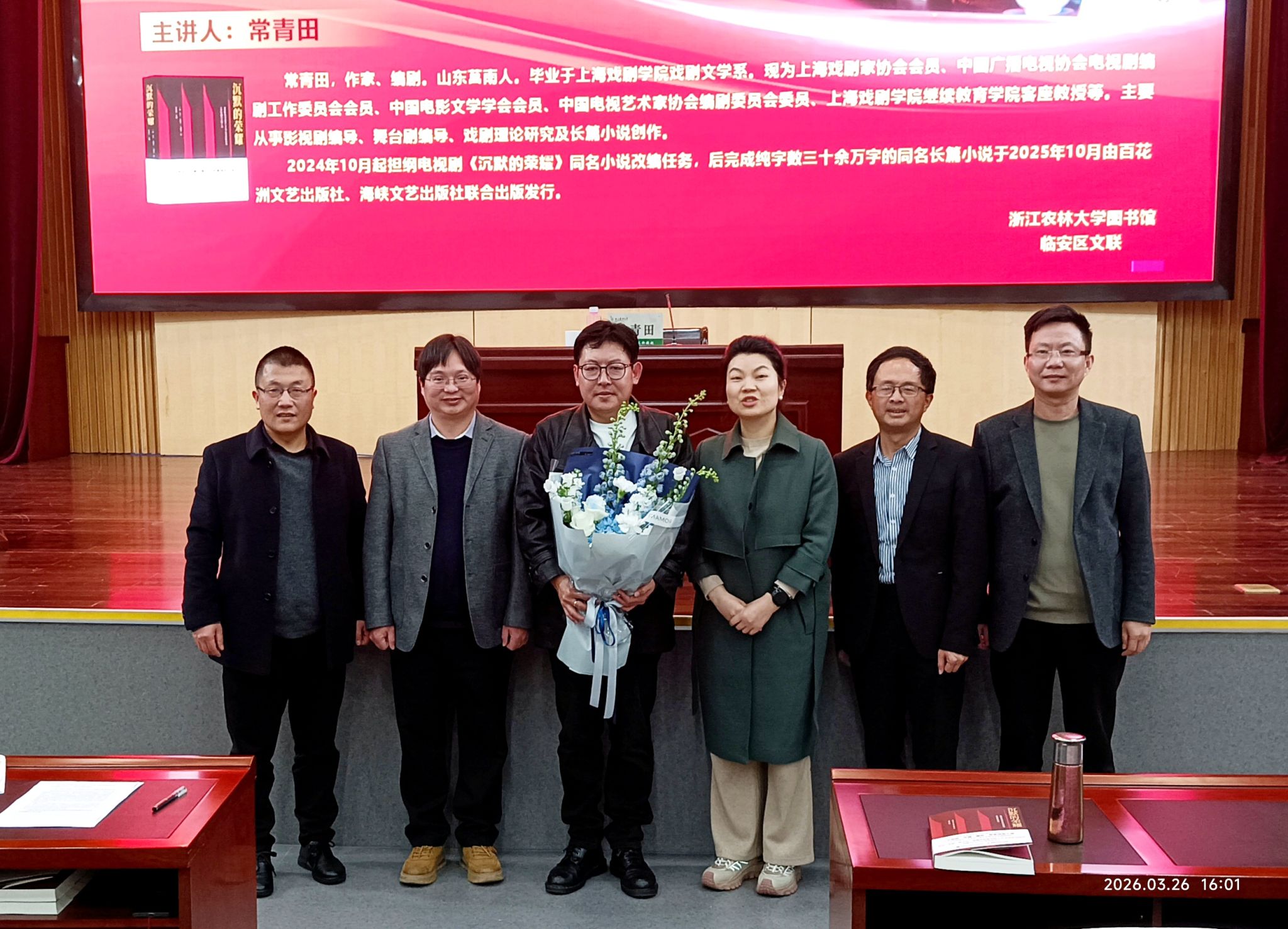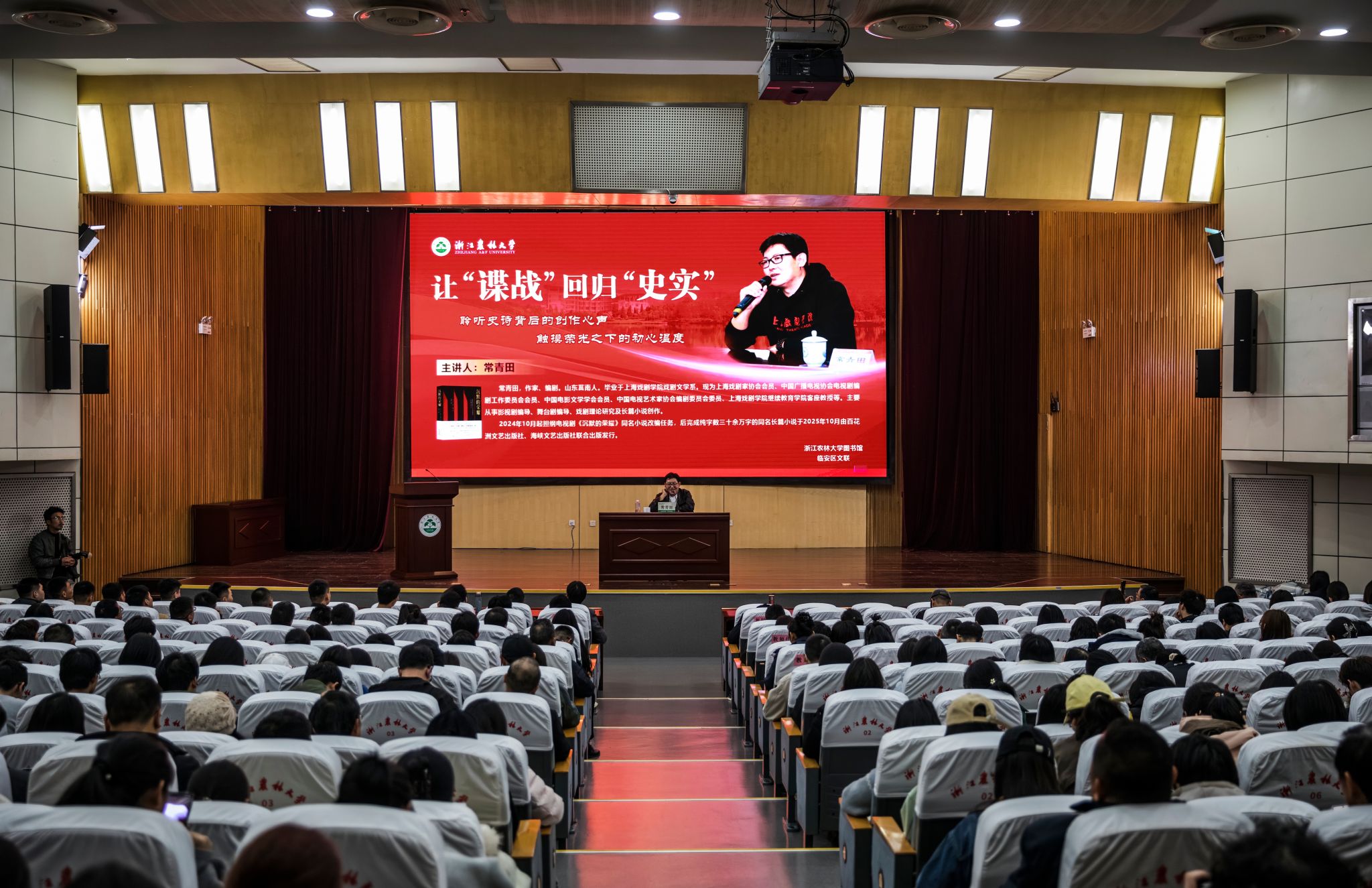 3月26日下午,“让‘谍战’回归‘史实’”专题讲座在图书馆第一报告厅举行。知名作家、编剧常青田先生应邀以《沉默的荣耀》同名小说改编为切入口,与500余名师生共同探究历史题材文艺创作的坚守与突破,拉开了浙江农林大学第十九届读书节的序幕。